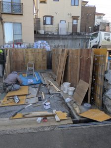 外構工事メインの擁壁型枠工事、コンクリート打ち込み工事、土建屋の皆さん大変だと思いますが