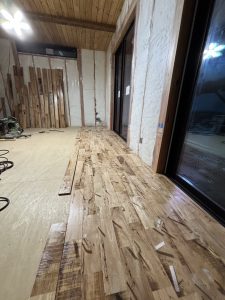 コツコツと一枚一枚丁寧に無垢材を貼ってる最中でございます!