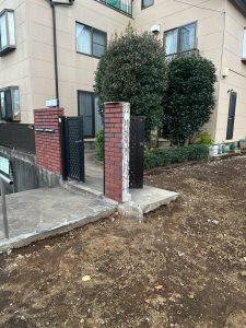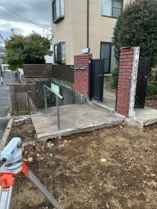 手前の花壇、門扉、階段を解体してから掘削していきます。